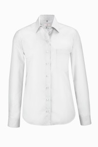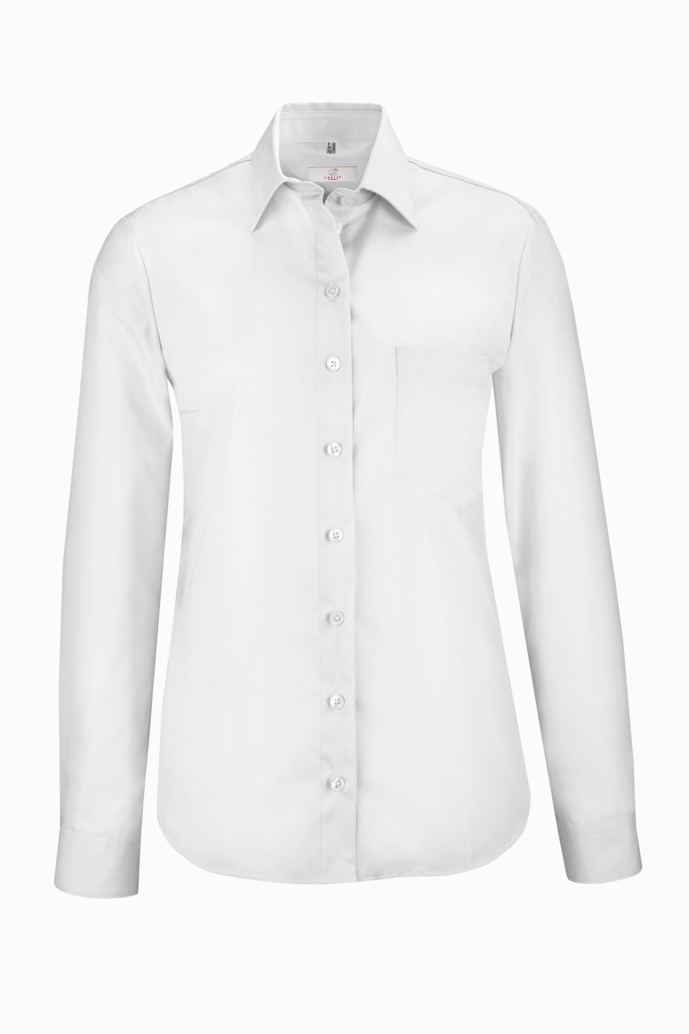 Koszula damska z długim rękawem, o kroju Comfort Fit, dostępna w kolorze białym. Produkt ten posiada wzmocniony kołnierz oraz mankiet.