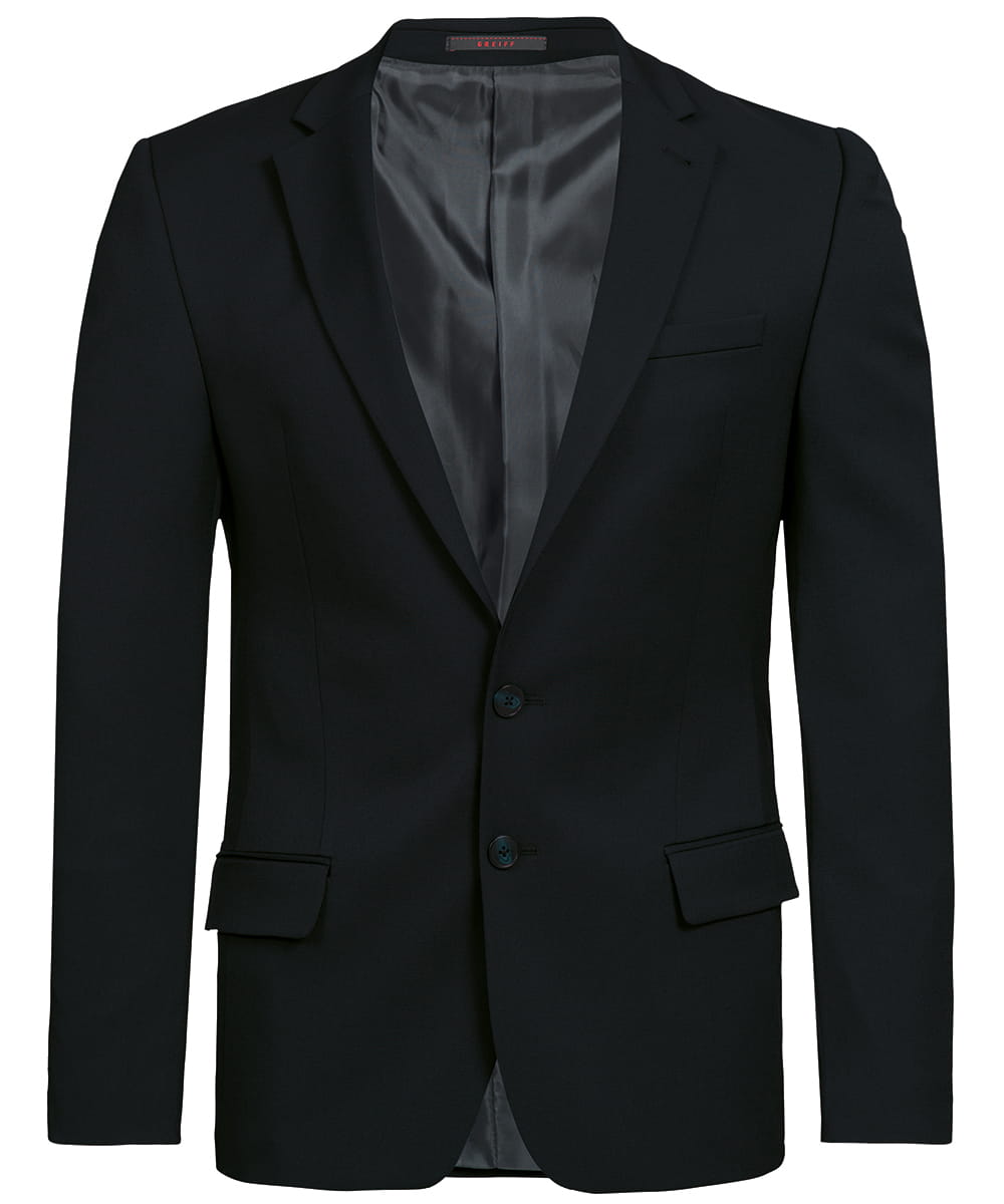 Marynarka męska Greiff BASIC o kroju Slim Fit, dostępna w 3 kolorach (czarny, antracyt, Navy Blue). Zapinana na 2 guziki, posiada 2 kieszenie z klapą, 3 kieszenie wewnętrzne oraz kieszonkę na klatce piersiowej. Wyróżnia ją dekoracyjne stebnowanie, a dla zwiększenia komfortu zastosowano rozcięcia boczne.